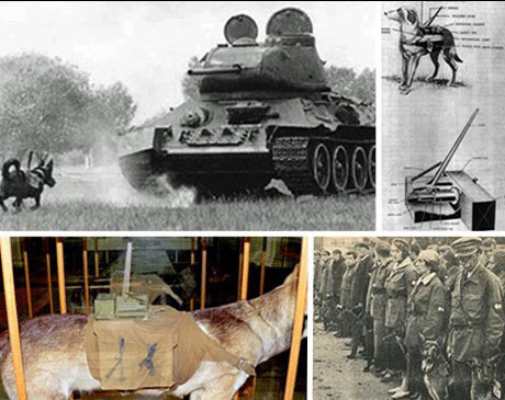 反坦克狗:战争的残忍可以从参与者的战术上得到淋漓尽致的体现。为了胜利不择手段!生命也变得毫无意义。反坦克狗就是前苏联的“杰作”。据说在二战期间,反坦克狗创下了摧毁300辆德国坦克的辉煌战绩。值得注意的是,反坦克狗并不是机器狗,而是有血有肉的真狗。战斗时,这些狗的背上就系着炸弹冲上战场,炸弹上的拨杆只要触到坦克底部就会发生爆炸。后来德国人用喷火器来破坏这种战略,狗慌忙逃离战场,从而减弱了反坦克狗的威力。