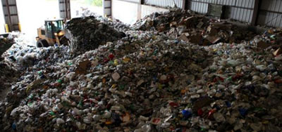 美国新泽西州海洋郡的回收中心,一辆单斗装载机正在推成吨的回收垃圾。借助于能够将塑料垃圾转化成燃料的机器,回收中心垃圾成山的景象将成为过去。