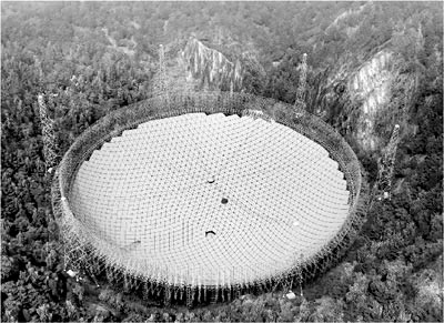 简单说来,射电天文望远镜,跟收卫星信号的天线锅其实是一回事。通过“锅”的反射聚焦,把几平方米到几千平方米的信号聚拢到一点上。射电天文学家就像是装备最高级的无线电爱好者,他们聆听的信号不是人造的,而是“天生”的。为了接收更微弱的宇宙信号,只有把天线锅造得更大。