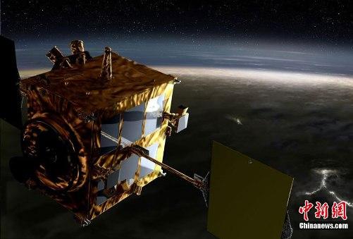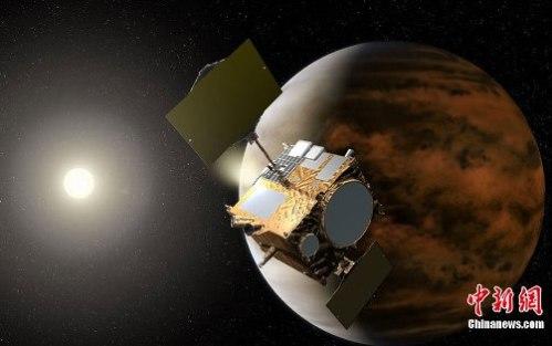 图为日本金星探测器“拂晓”号抵达金星上空的模拟图