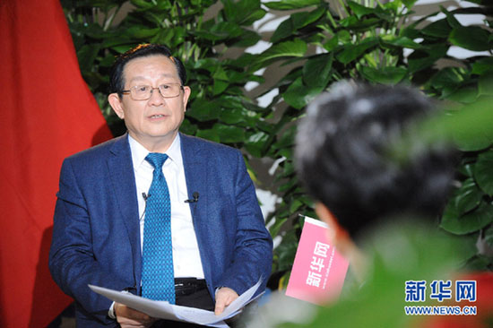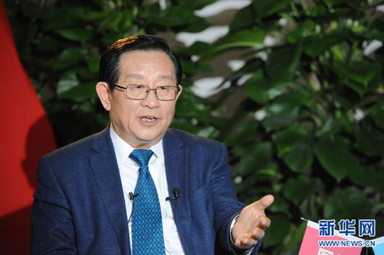 图为,科技部部长万钢接受新华网和中国政府网专访。新华网郭小天 摄