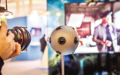 图① 12月15日,互联网之光博览会上展示的一款虚拟现实全景摄像机。