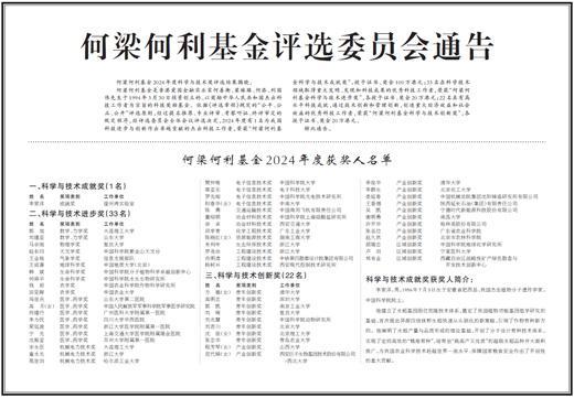何梁何利基金2024年度科学与技术奖评选结果揭晓。