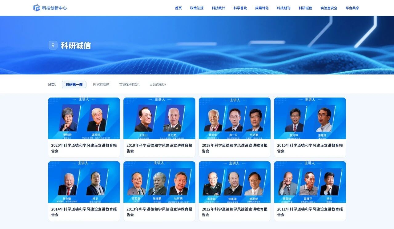 国家智慧教育公共服务平台现有“科研第一课”栏目整体接入,包含科研第一课、科学家精神、实践案例展示、大师谈规范等内容,为广大师生提供系统化、规范化、一站式科研诚信教育与指引服务。