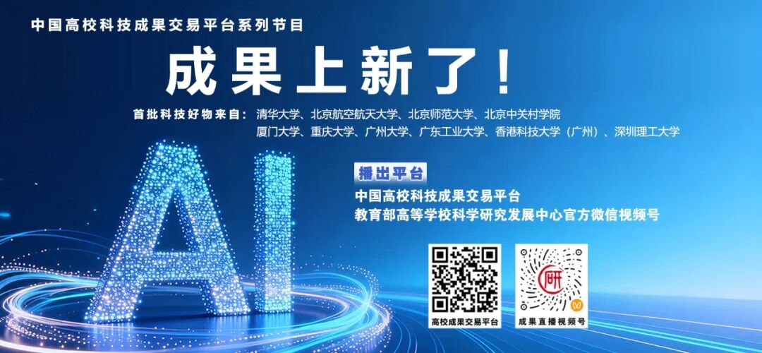 首期“成果上新了!”直播集中推介11项来自清华大学、北京航空航天大学、北京师范大学、北京中关村学院、厦门大学、重庆大学、香港科技大学(广州)、深圳理工大学等高校的优质科技成果,涉及人工智能、智能装备、信息通信等多个前沿领域。