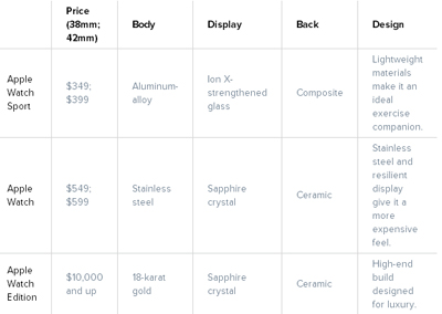 需要注意的是,并不是说价格越贵品质就越好。价格只反映对应款型的Apple Watch使用的材料,不同款型的Apple Watch在内部组件配置和功能上几乎是一样的。