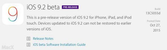 iOS 9.2 beta首个测试版发布(图片来自MacX)