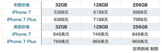 中国在iPhone的首发之列。容量方面从32GB起步,价格5388元起。其中亮黑色只提供128GB版本以及256GB版本。