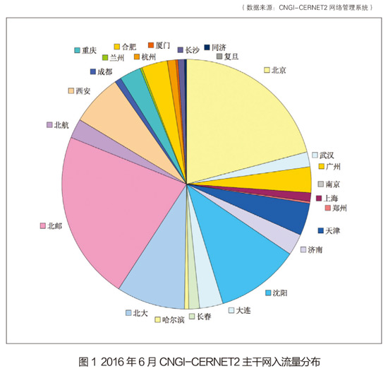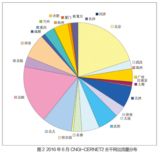 从6月的出流量分布图2来看,北京节点出流量最高,其流量为6383.616Mbps,占到总出流量的20.10%;其次是北邮节点,占到总出流量的17.23%;流量排名第三位的是北大节点,其占总出流量的8.86%。(本文作者系CNGI-CERNET2 NOC负责人)