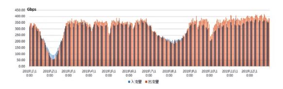 2019年继续对重点用户和重要应用的网络访问进行带宽保障,包括国家超算中心的访问流量、ETS托福考试、国际学术数据库访问、第一次在中国大陆举办的中外合作办学以及网络领域顶级国际学术会议SIGCOMM2019等。