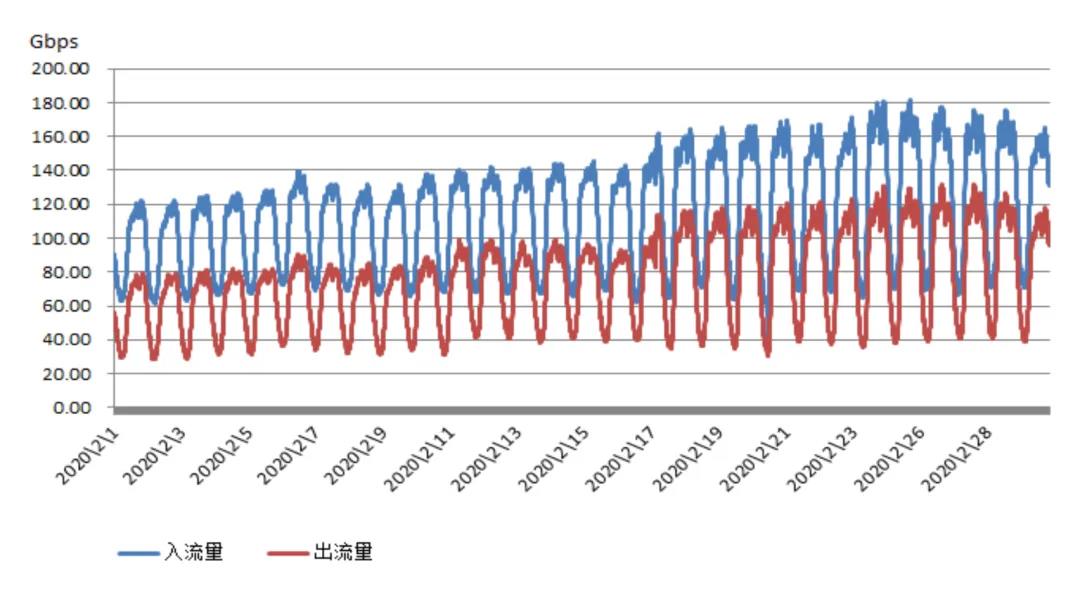 图4 2020年2月CERNET主干网流量