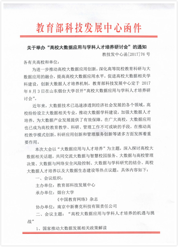 通知下载>>关于举办“高校大数据应用与学科人才培养研讨会”的通知