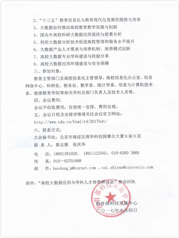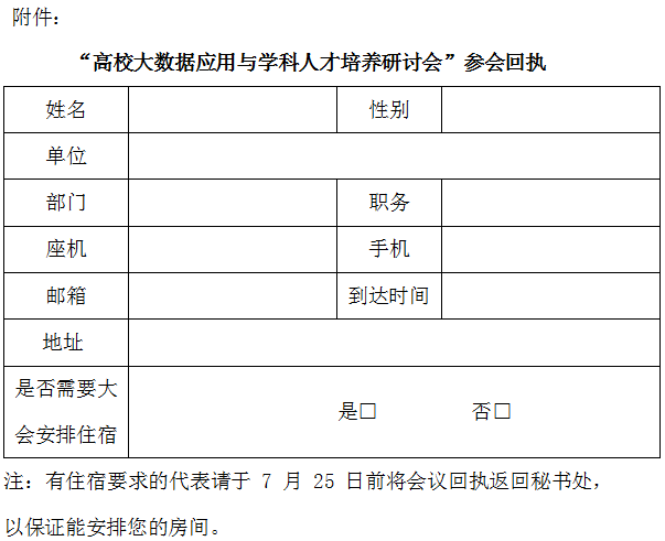 回执下载>>“高校大数据应用与学科人才培养研讨会”参会回执