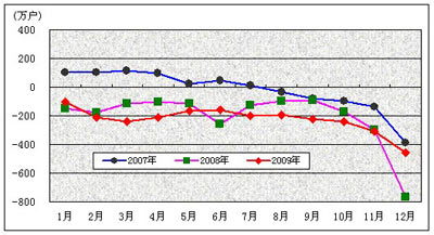 图2. 2006-2009年固定电话用户各月净增比较