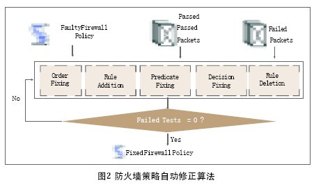 Margrave能够帮助管理员发现问题,但发现问题以后还是需要网络管理员自己修改问题。有没有可能让计算机帮助管理员来自动解决错误的配置?虽然大多数网络管理员不敢将配置托付给一台计算机,但计算机的科学家们已经开始了这样的尝试。密歇根州立大学陈飞等人发表的文章开始了自动修正防火墙策略的第一步。修正防火墙策略首先必须发现防火墙策略的错误,为了能让计算机理解防火墙的错误,陈飞等人将防火墙可能发生的错误定义为5类:1.错误的顺序,防火墙的规则发生冲突时是以优先级或先后为选择依据,如果规则的优先级倒置或顺序错误,则该生效的规则没有生效,或者错误的规则生效了;2.缺少规则,顾名思义就是缺少了用于处理该类报文的规则;3.错误的条件,即期望处理的报文和规则定义的报文不完全符合;4.错误的动作,即虽然定义期望处理的报文是什么,但是对该报文应该进行的动作定义错了;5.多余的规则,这种规则的作用由更高优先级或先出现的规则所实现,不会被命中。为了让计算机自动发现错误和修改错误,作者采用软件测试的办法,将安全目标转换成一系列的测试报文(测试报文分为两种:一种应该穿过防火墙,另一种不应该穿过防火墙),作者再将两类报文分别对防火墙策略进行测试,如果所有报文的行为都符合预期,说明规则正确,否则就需要修改报文。为了避免计算机自动修改规则时出现状态爆炸问题,作者引入了全匹配防火墙决策图(all-matched Firewall Decision Diagram)的数据结构。结合测试报文和决策图两种工具,作者实现了一种自动化的策略修改算法。尽管根据对实际防火墙策略的实验,作者的算法也只对某些错误的更正有较好的效率,但这仍是防火墙自动策略管理的第一步。
