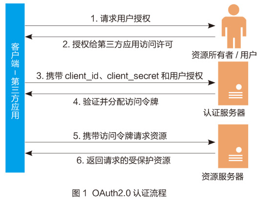相比于传统的OAuth2.0的复杂的配置认证,Django OAuth Toolkit完美地提供了方便快捷的OAuth2.0的支持,OAuth2.0的基本流程如图1所示。