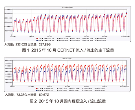 2015年10月CERNET主干网网络运行正常。这段时间随着用户使用量的增加,CERNET主干流量、国内互联流量较9月均有所上升。从CERNET主干网流量对比来看,全国10大地区中心入方向流量清华居首,华中地区次之,华东北地区位列第三;出方向流量清华第一,东北地区第二,华东北地区第三位。