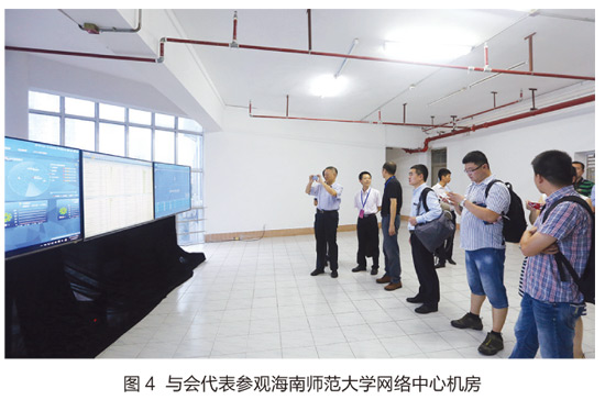 海南师范大学刘家宁教授做《海南师范大学大数据在信息化中的应用》专题报告。与会人员还前往海南师范大学,参观了海南师范大学网络中心、中心机房以及大数据、桌面云的实施现场,并在海南师范大学展开了热烈的现场研讨。