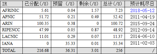 6月全球IPv4地址分配数量为23B,其中获得最多的是中国,8B;其次是美国,3B。6月,除亚太、欧洲、拉美、北美等地区IPv4地址已耗尽外,非洲地区分配照常。各地区IPv4地址消耗情况,参见表1。在过去的12个月,美国获得的IPv4地址最多,共计393B;其次是埃及,80B。