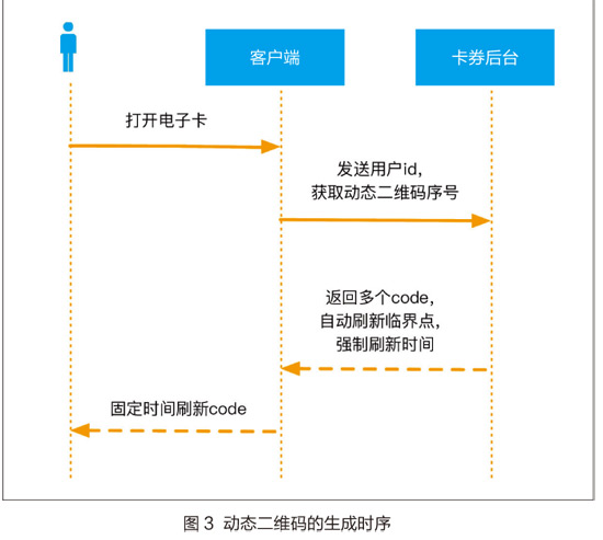 为保证电子校园卡的身份认证安全,防止卡片被盗用,则必须采用安全性更高的方案,即动态二维码。在微信校园卡中,这一动态二维码体系是以原生方式在微信APP中实现的,其服务的稳定性和前后台运行环境的安全性均得到了强有力的保障,学校在这方面并不需要投入额外的精力。用户在微信中打开校园卡详情时,触发动态二维码的更新,其生成过程如图3所示。