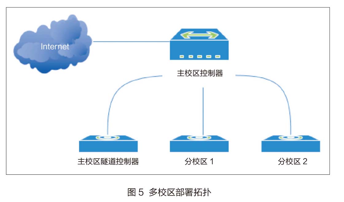 针对学校存在多校区的情况,在主校区部署1台主控制器,然后在所有校区部署隧道控制器,如图5所示。