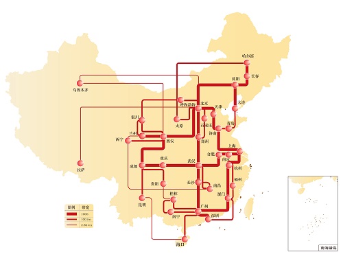 经过“211工程"三期建设,CERNET主干网的覆盖范围扩展到全国36座城市,38个核心节点,完成了CERNET八大地区主干网的升级扩容,最高传输速率达到100G,网络覆盖全国31个省(自治区、直辖市)的200多座城市。
