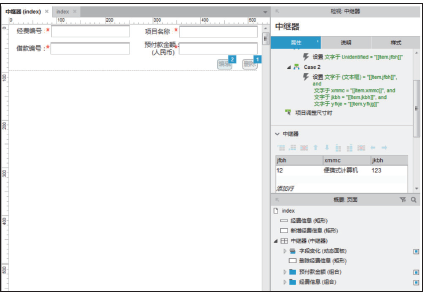 一对多模块交互设计:“货物信息”和“经费信息”模块,主要是利用中继器和函数关系实现,如图3所示,通过操纵对应的功能按钮,能够控制“经费信息”模块的字段及数据的展现。