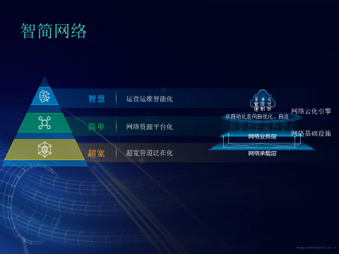华为公司采用创新的技术和产品承载对网络智简的理解,完成真正的理论到工程的闭环。
