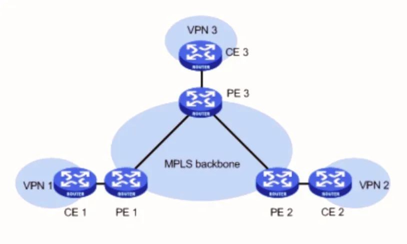 MPLS VPN是一种基于MPLS技术的IP虚拟专用网络,该技术是在网络路由和交换设备上应用MPLS,简化核心路由器的路由选择方式,在不同的站点之间通过构筑虚拟网络结构以提供类似无连接的虚拟链路服务,并且不同的VPN用户之间完全隔离且互不影响,因而MPLS VPN可用于构造宽带的“局域网”,可以满足多种灵活的业务需求。