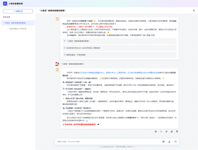 东北财经大学正式推出基于国产DeepSeek大模型自主研发的校园智慧助理“小银杏”,标志着该校在人工智能与教育深度融合领域迈出关键一步。该智慧助理通过深度整合校内教学、科研、行政及生活场景的核心数据,构建起覆盖全场景的智能化服务体系,成为高校数智化转型的又一创新实践案例。
