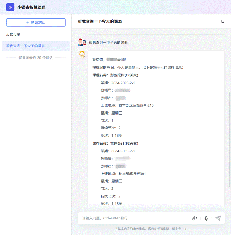 在技术架构上,“小银杏”智慧助理采用本地化部署的DeepSeek大模型,依托学校建立的本地智算平台实现自主可控运行。平台整合高性能服务器集群与异构资源调度系统,不仅支撑财经数据建模、财务预测推演等高复杂度计算任务,还可无缝对接教务管理系统、科研数据库等23个校内业务平台。