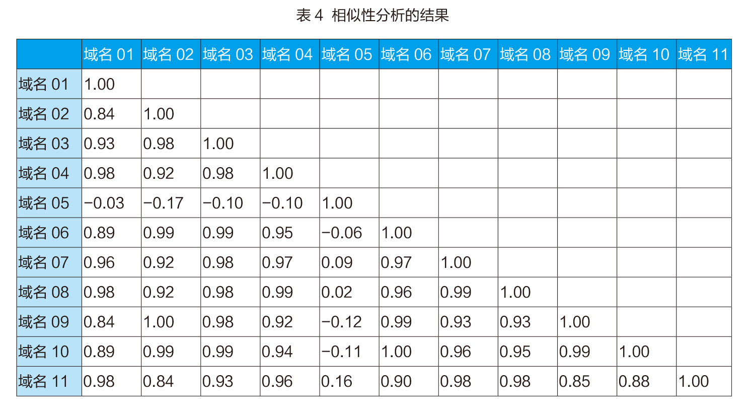 相似性分析的结果如表4。