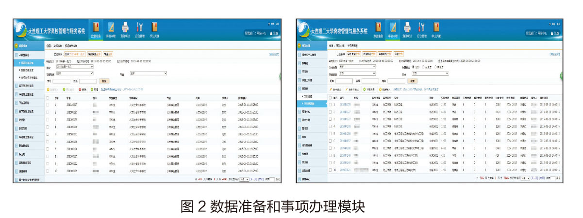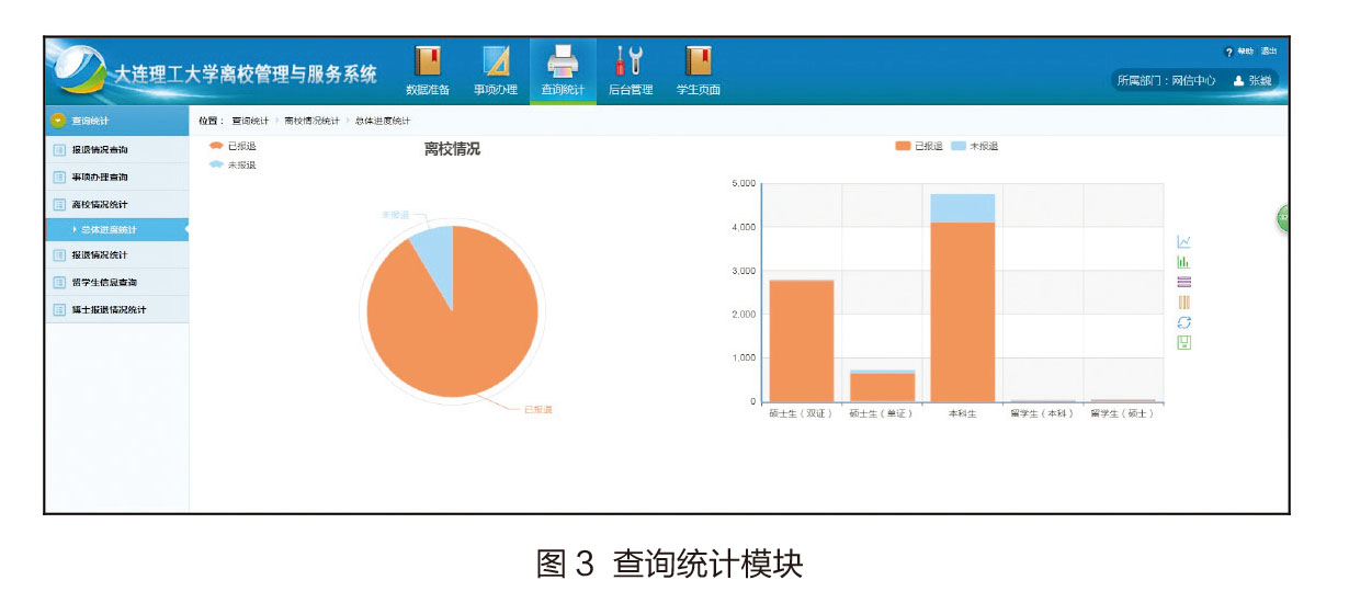 离校管理信息系统主要包括数据准备、事项办理、查询统计、系统管理以及毕业生查询等模块。