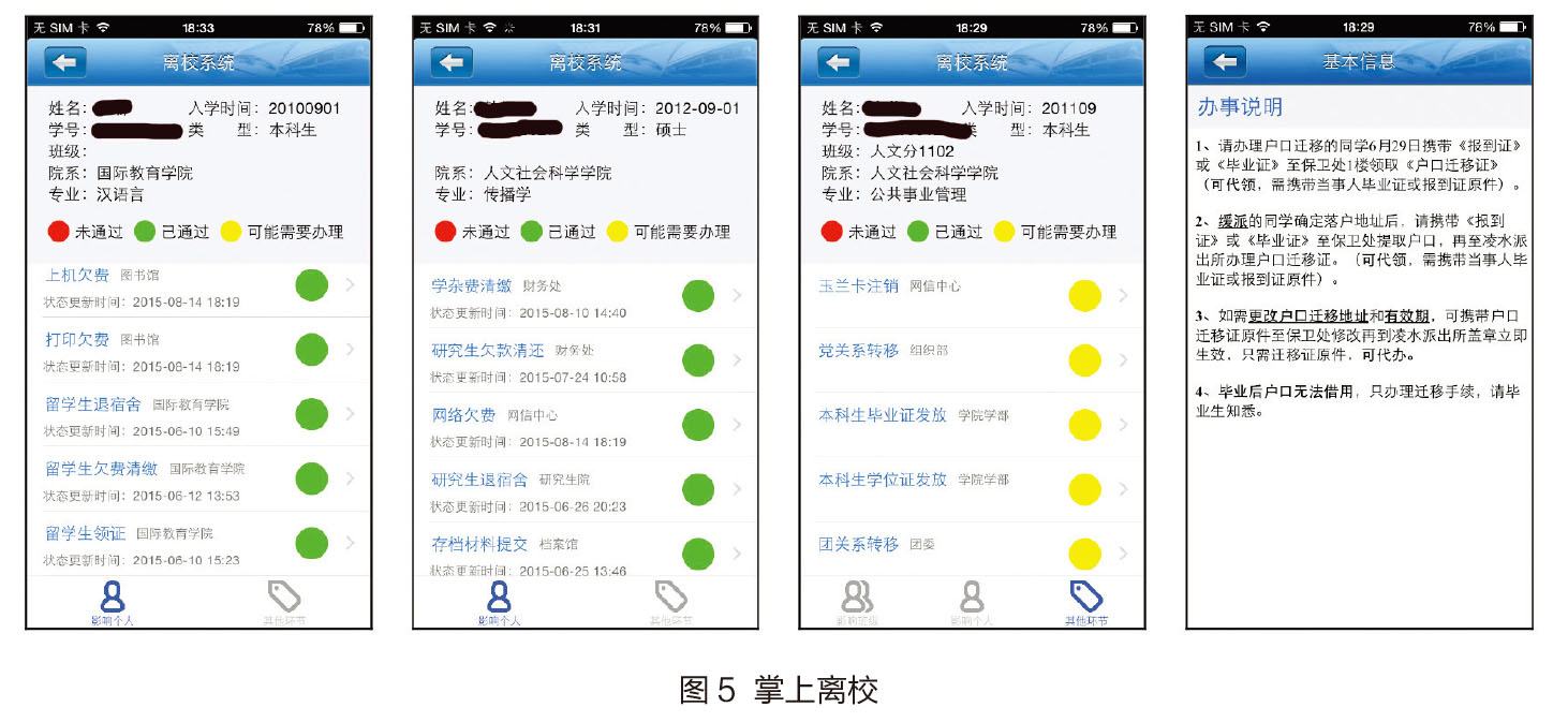 离校业务是高校学生一条线管理中很重要的一环,只有信息和流程都梳理清晰后,才能更容易地开发离校管理与服务系统。学校已有的离校工作模式经过了学校多年的摸索和积累,已经形成了固有的业务流程和业务处理方式。为使离校系统适应原有的业务流程并加以优化和改进,我们在梳理所有离校环节的基础上对部分业务进行合理的信息化改造,使离校工作在整体上和局部环节都得到优化。