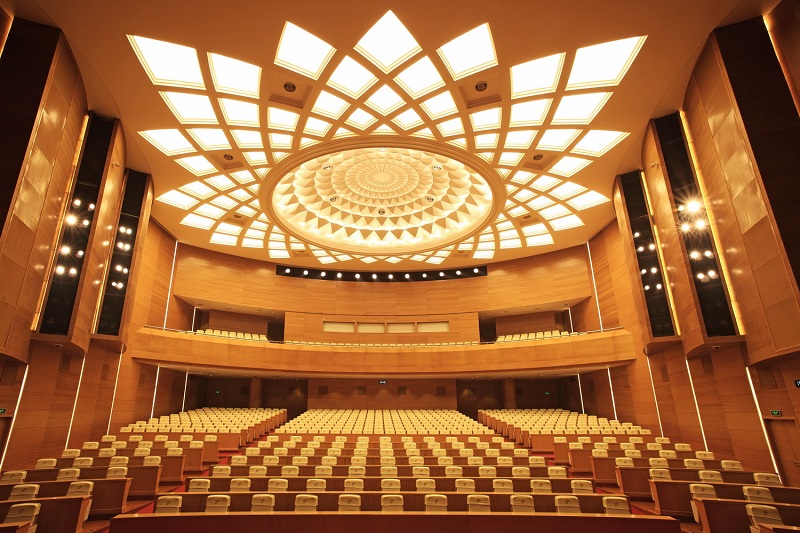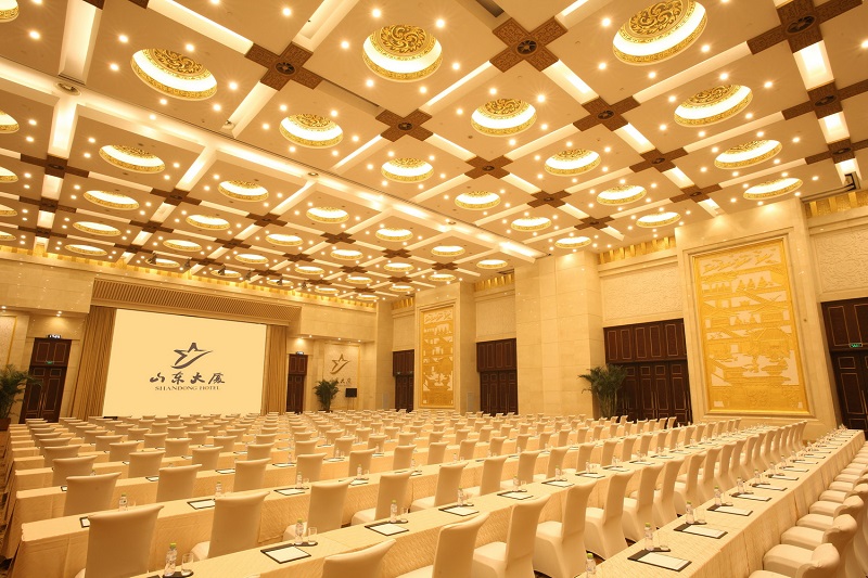 山东会堂可容纳2500人,舞台可升降和平移,舞台两侧配有200英寸高清P4LED显示屏幕,是举办大型会议、音乐晚会和文艺演出的绝佳场所。