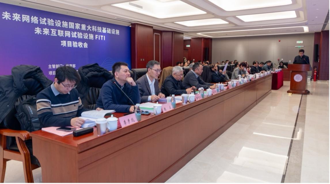 2025年1月16日,教育部科信司在清华大学组织召开“未来网络试验设施国家重大科技基础设施(清华大学建设部分):未来互联网试验设施FITI”项目工艺性能专项验收评审会。教育部科技司一级巡视员张国辉,清华大学党委常务副书记向波涛、科研院院长刘奕群等出席验收会。验收专家组由中国工程院院士戴浩、丁文华、张宏科等11名专家组成。
