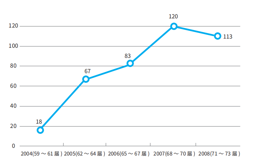 从2004年到2008年,中国参会规模经历了快速增长,年度累计参会人次于2007年(第68~70届)达到了120人的第一个小高峰(如图1所示),但每届的参会人数依然只占总数的3%左右。这条早期曲线勾勒出“拓荒期”的模样:从零星亮相到初具规模,但整体仍处生态边缘。