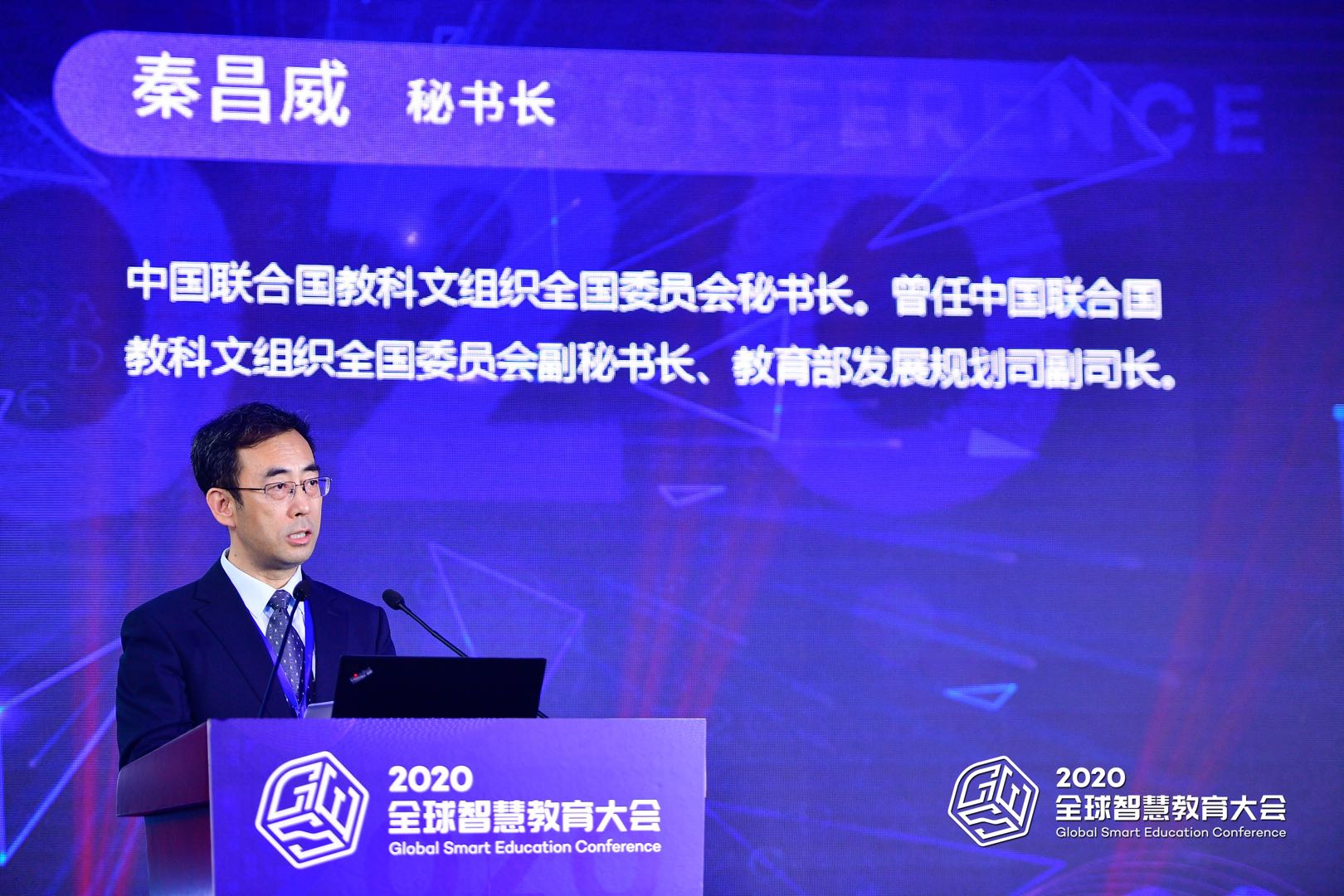 秦昌威秘书长在致辞中指出,集成人工智能的线上教育极大降低了疫情中教育的损失,前所未有的大规模线上教学创新案例为探索未来教育发展打开了一扇大门,网络教育和人工智能教育应用使优质教育资源在全球范围的共享成为可能,为解决全球教育问题开拓了新渠道。