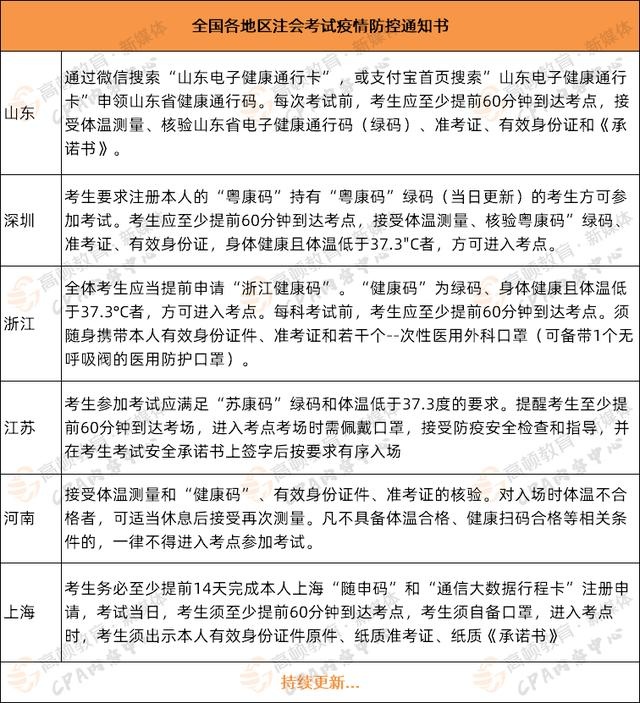 众所周知,疫情防控已经成为了2020年各个考试的最大对手,CPA考试也不例外!因为疫情,已经有北京、新疆两个地区官宣取消了今年考试,而其他地区也在近日陆续发出了前所未有的考试新安排和要求!可以说,基本上每一项要求,每一点规定,都直接关乎考生能否顺利进入考场参加考试,赶紧看下你所在地区的情况吧!