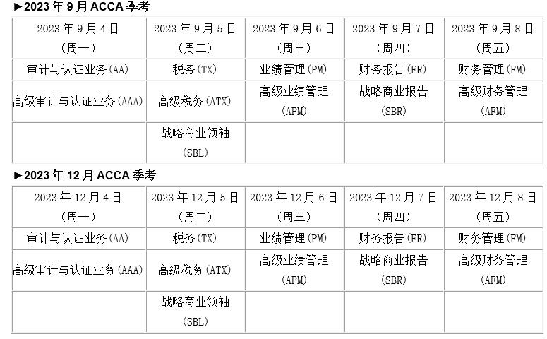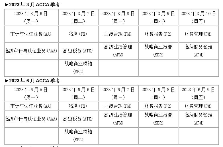 2023年全年acca考试安排表,报考前必看!
