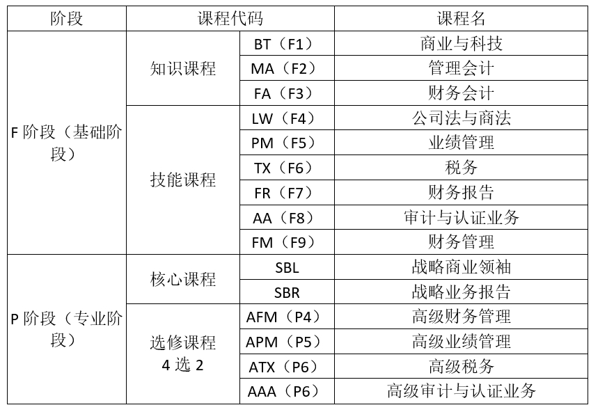 ACCA考试科目共15门,考生通过13门即可通过考试。科目表如下: