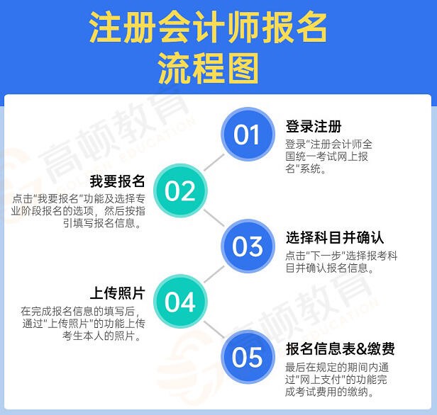 考生可以直接登录“注册会计师全国统一考试网上报名”网站,根据页面显示内容,填写自己的报名信息、个人身份信息等等,信息审核通过之后缴纳报名费用即为报名成功。关于具体的报考流程,大家可参照下图: