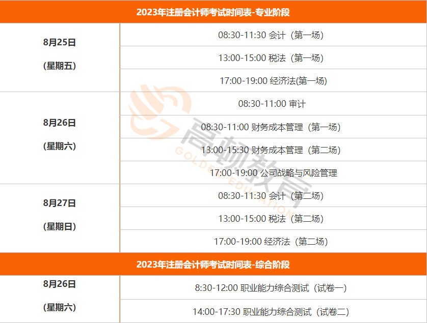 一、注册会计师考试时间2023年几月几号?
