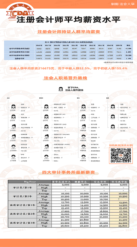 综上,cpa以本科学历为主,工作经验大多在5-10年,工资水平主要在5-8k,而大于25k工资的人数属于少数,一般为会计师事务所的高层。当然如果是在经济发达的省会或金融发达的一线城市,cpa的发展潜力会很大,薪资也会更高。