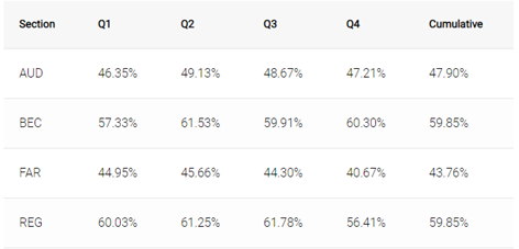 虽然测试全年进行,但AICPA官网每季度公布每个部分的候选人通过率。通过比较不同科目考试通过率,了解学生对各科目内容掌握的情况,也可以通过分析同一科目的历年通过率,了解更多关于注册会计师的考试和如何确保合格分数的信息。