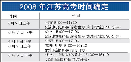 江苏省2008年普通高中学业水平测试必修科目考试将于4月8日、9日在全省349个考点同时举行,记者昨天(6日)从江苏省考试院了解到,今年共有57.5万考生报名参加本次考试。目前,各地的各项考试准备工作已基本就绪。