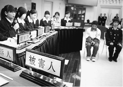 北京市海淀区未成年人保护2009年工作会上,“模拟法庭”在进行案例演示。资料图片
