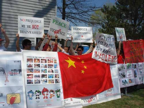 负责联络这次示威的柯盖特大学的老师龙小宁介绍说,所有的师生都是自发聚集到这里。这些学生分别来自柯盖特大学、苏尼大学的宾哈姆顿分校、雪城大学等柯盖特大学只有五名中国留学生,全部参加了今天的抗议活动。留学生们手中高举中国国旗及英语标语,还展出宣传北京奥运及抗议达赖和西方媒体的图片。学生们从上午十点开始一直持续到下午五点演讲结束,在会场外抗议示威七个小时,向进出演讲的人说明西藏事实真相。他们高喊“达赖停止撒谎”、“媒体必须公正报道”等口号,十分引人注目。
