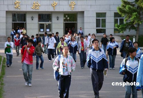 5月26日下午,齐齐哈尔市实验中学高三学生,进行完第四次模拟考试后走出学校。高考已经进入倒计时,考生们满怀信心准备接受高校挑选。 中新社发 王云龙 摄