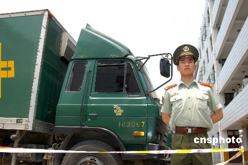 资料图:6月4日上午,250万份由江苏自主命题的2005年高考试卷在省招生办工作人员和武警江苏某部官兵的押运下,安全抵达南京。据悉,2005年全国高考报名人数867万人,比2004年增加144万人,全国统一考试时间为6月7、8日两天,由于一些省市高考部分科目设置不同,2005年江苏省、广东省高考时间为6月7、8、9日以及10日上午共三天半。2005年全国高校招生计划475万,其中本科230万。 中新社发 王跃武 摄